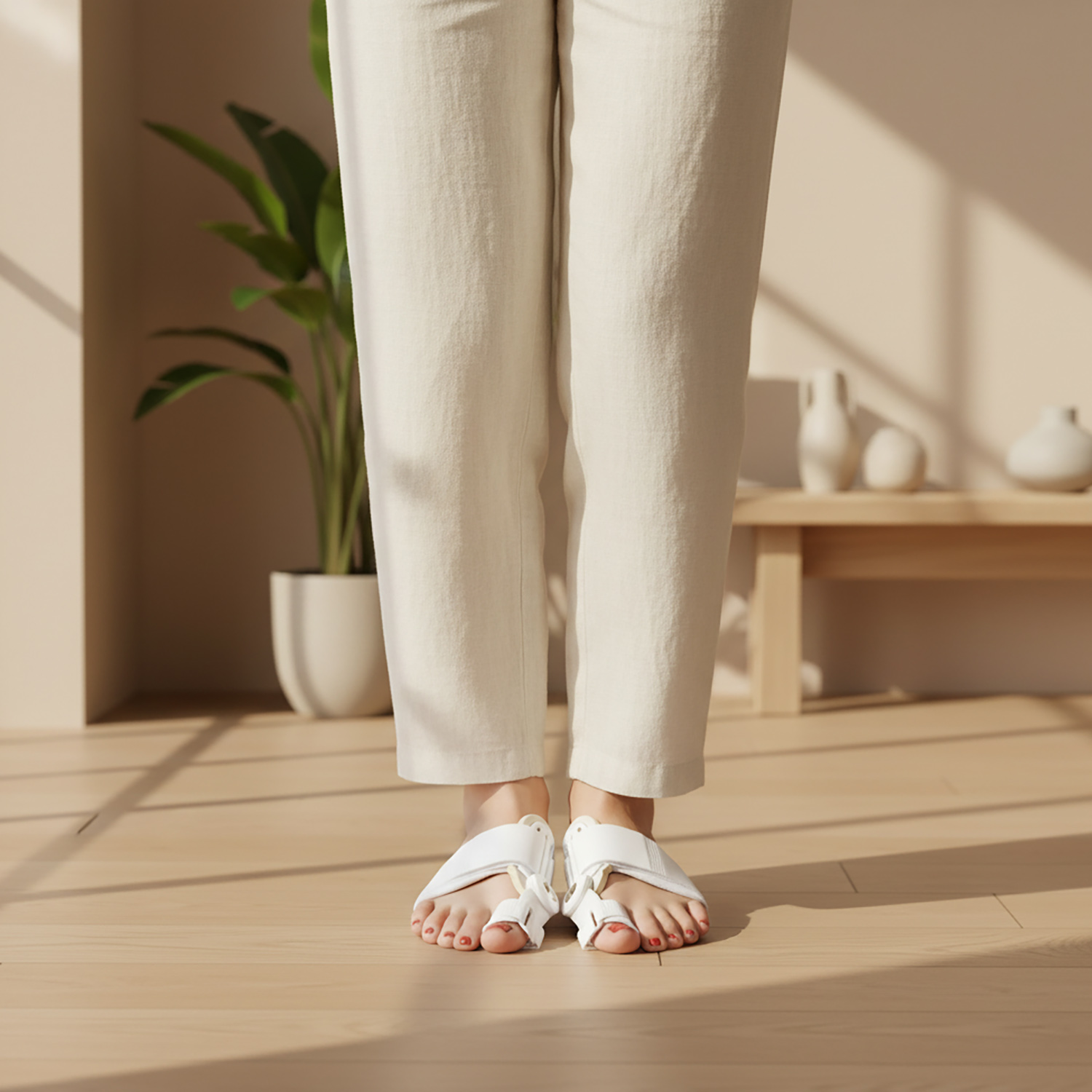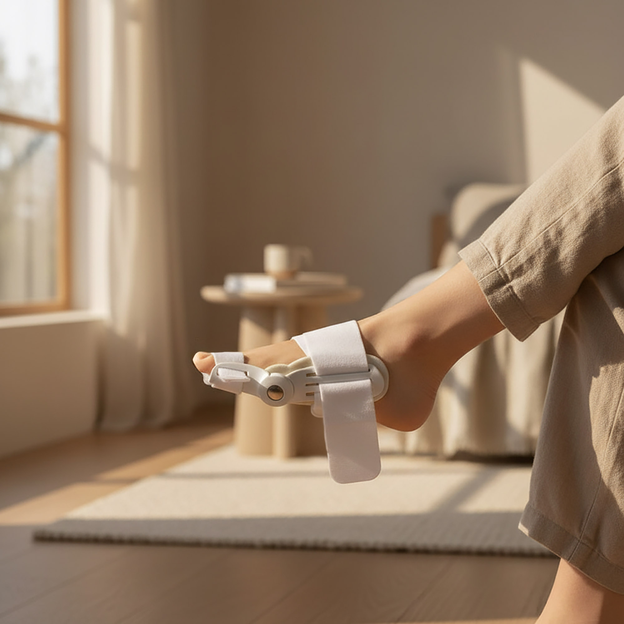 - Skuteczna Korekcja Ortopedyczna: Aparat działa poprzez wywieranie stałego nacisku na duży palec, co pozwala na stopniowe prostowanie deformacji typu Hallux Valgus.