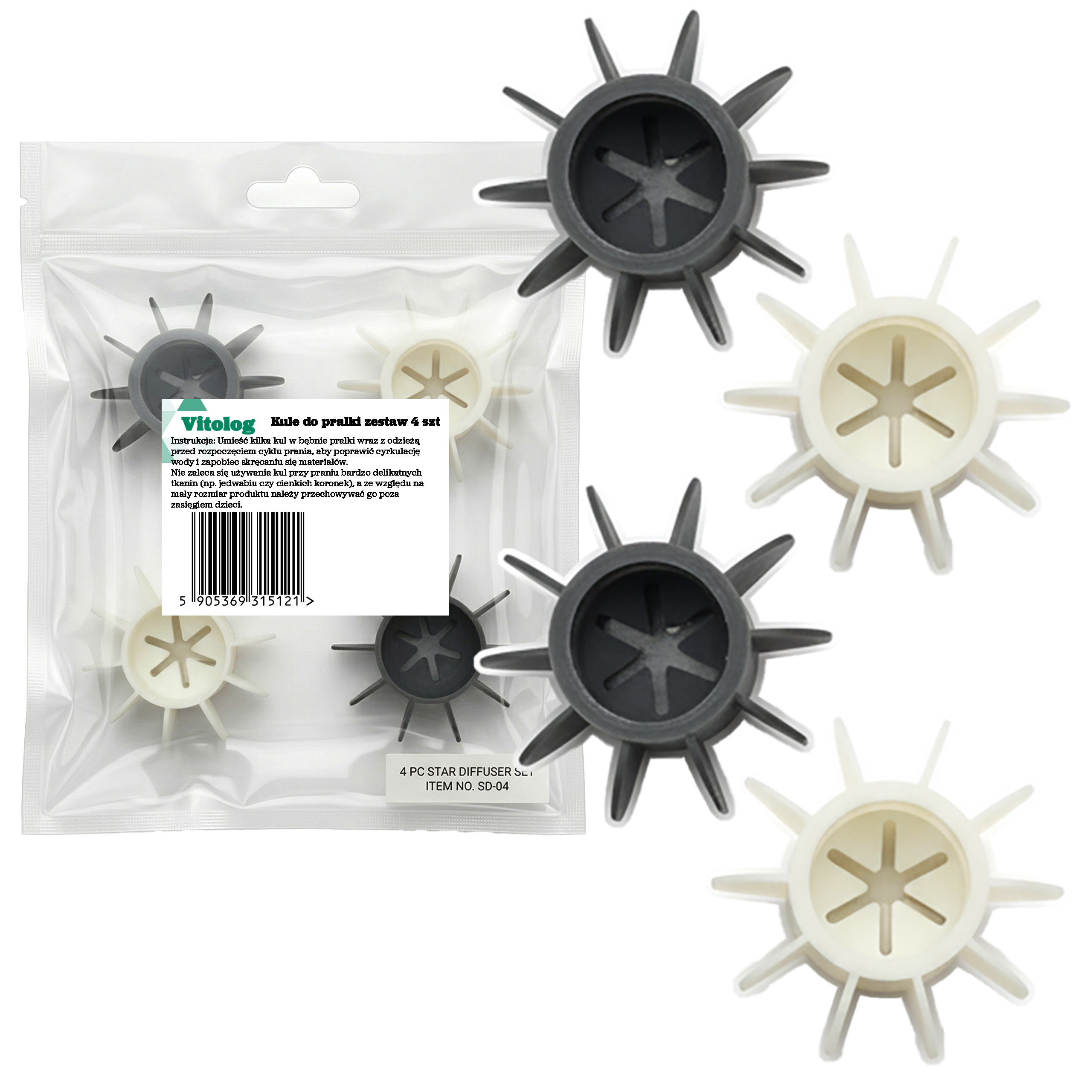 - Innowacyjna konstrukcja „otwartego środka”: Kule posiadają otwory wewnątrz, co pozwala na swobodny przepływ wody i detergentu, zapewniając efektywne pranie bez ryzyka uszkodzenia delikatnych tkanin.