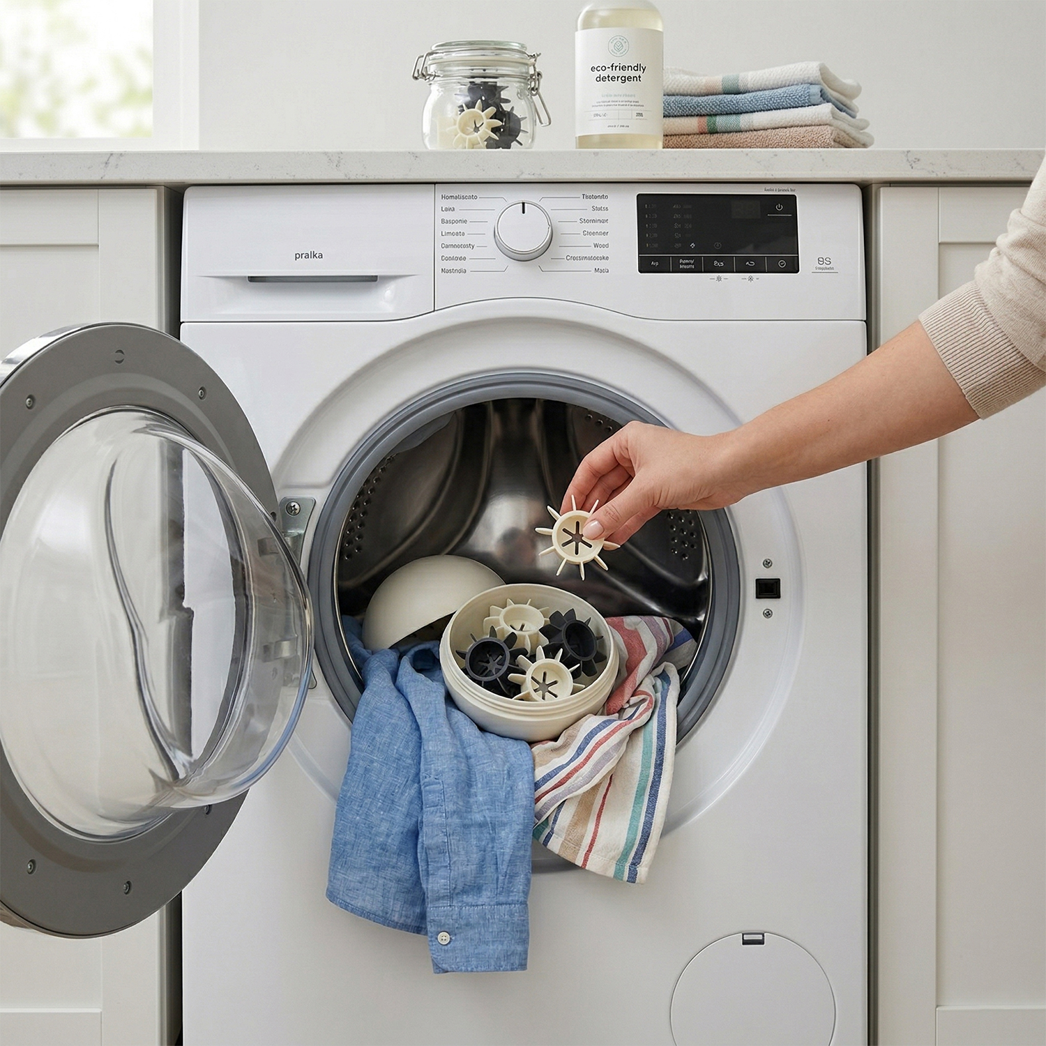 - Wielorazowość: Wykonane z trwałego, elastycznego tworzywa, kule służą przez dziesiątki cykli – po praniu wystarczy oczyścić je z zebranych kłaczków i są gotowe do ponownego użycia.