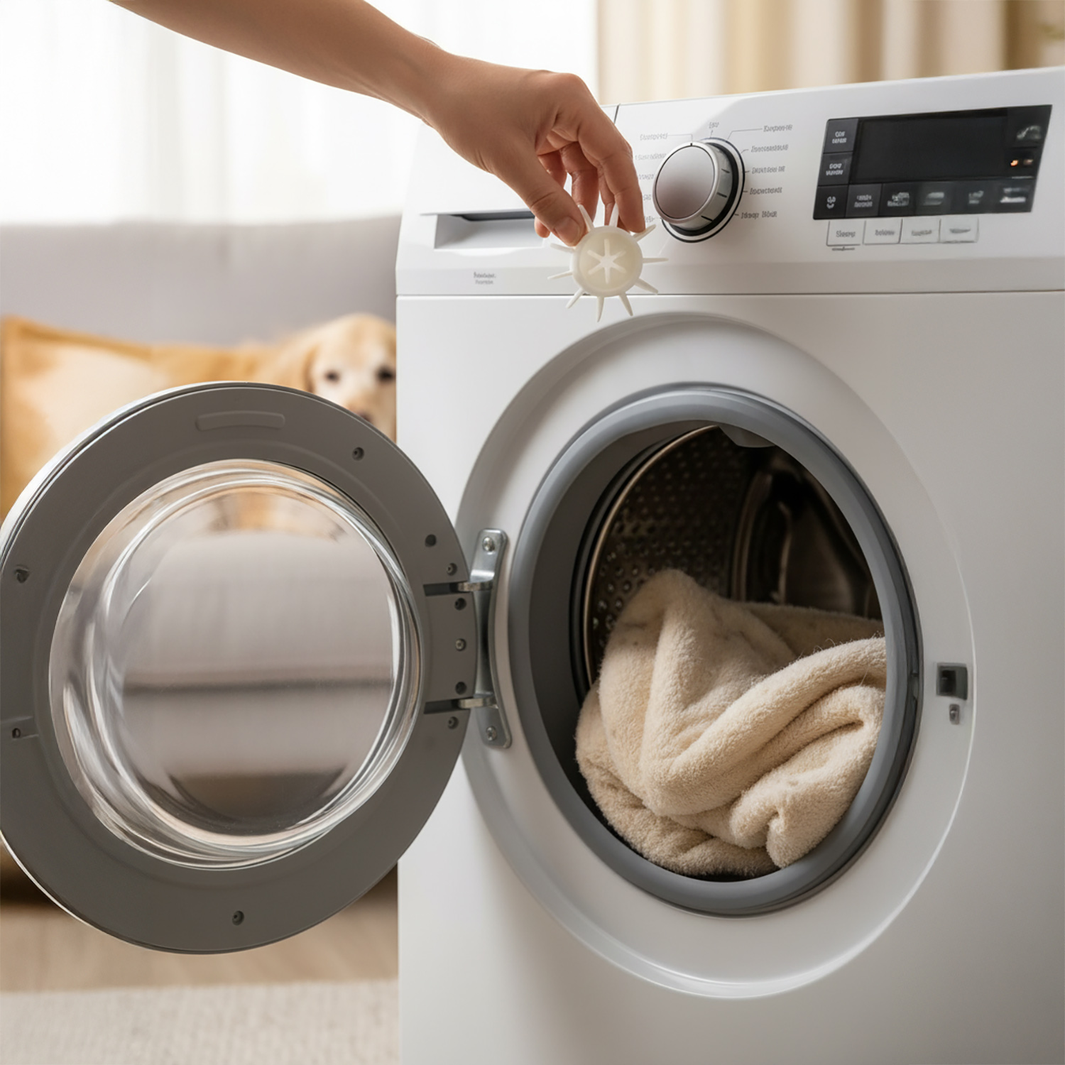 O: To bardzo proste! Po zakończeniu cyklu wyjmij kule z pralki i ręcznie usuń z nich zebraną sierść oraz włosy. Możesz je również przepłukać pod bieżącą wodą.