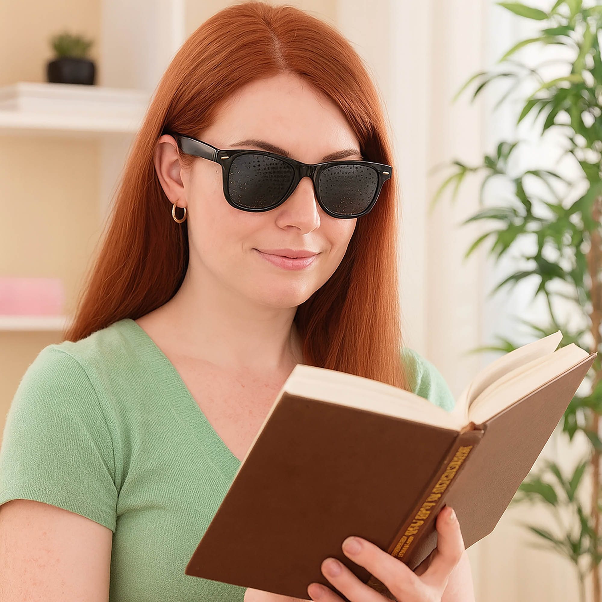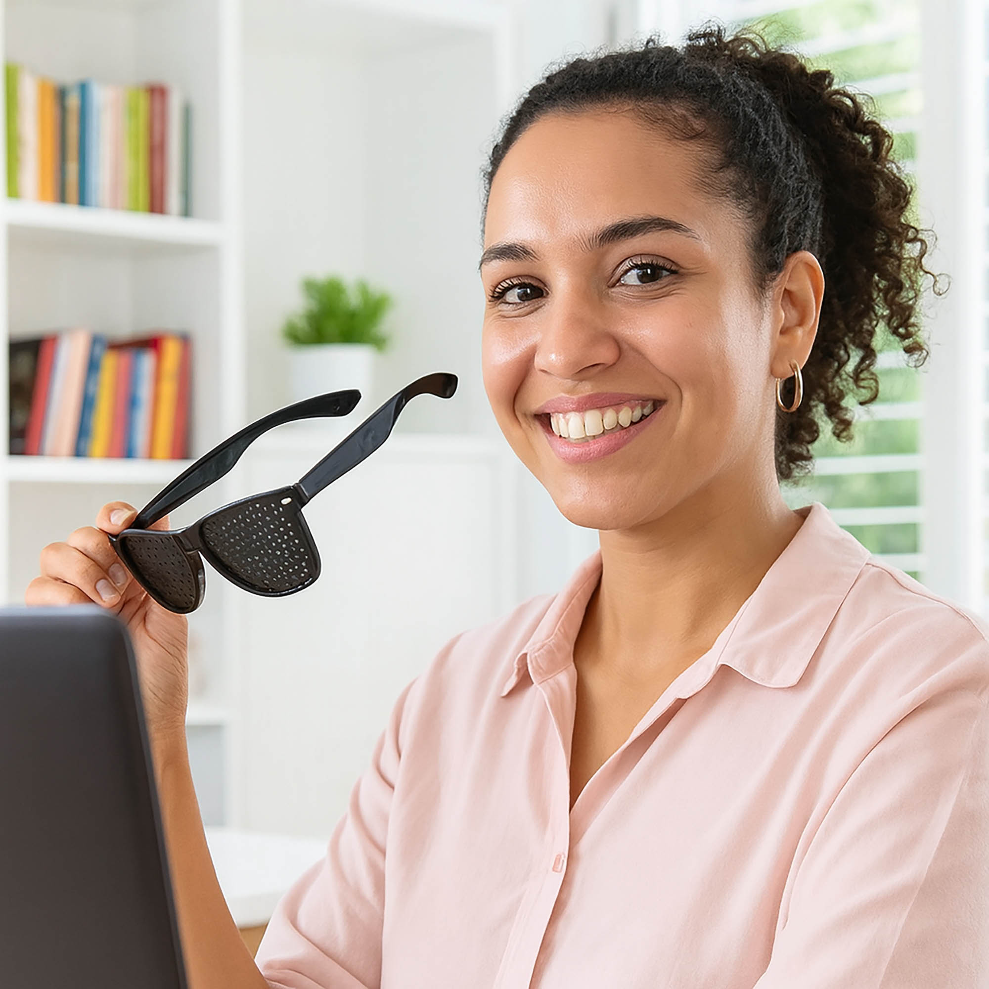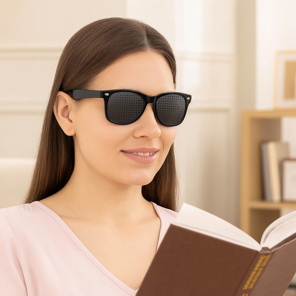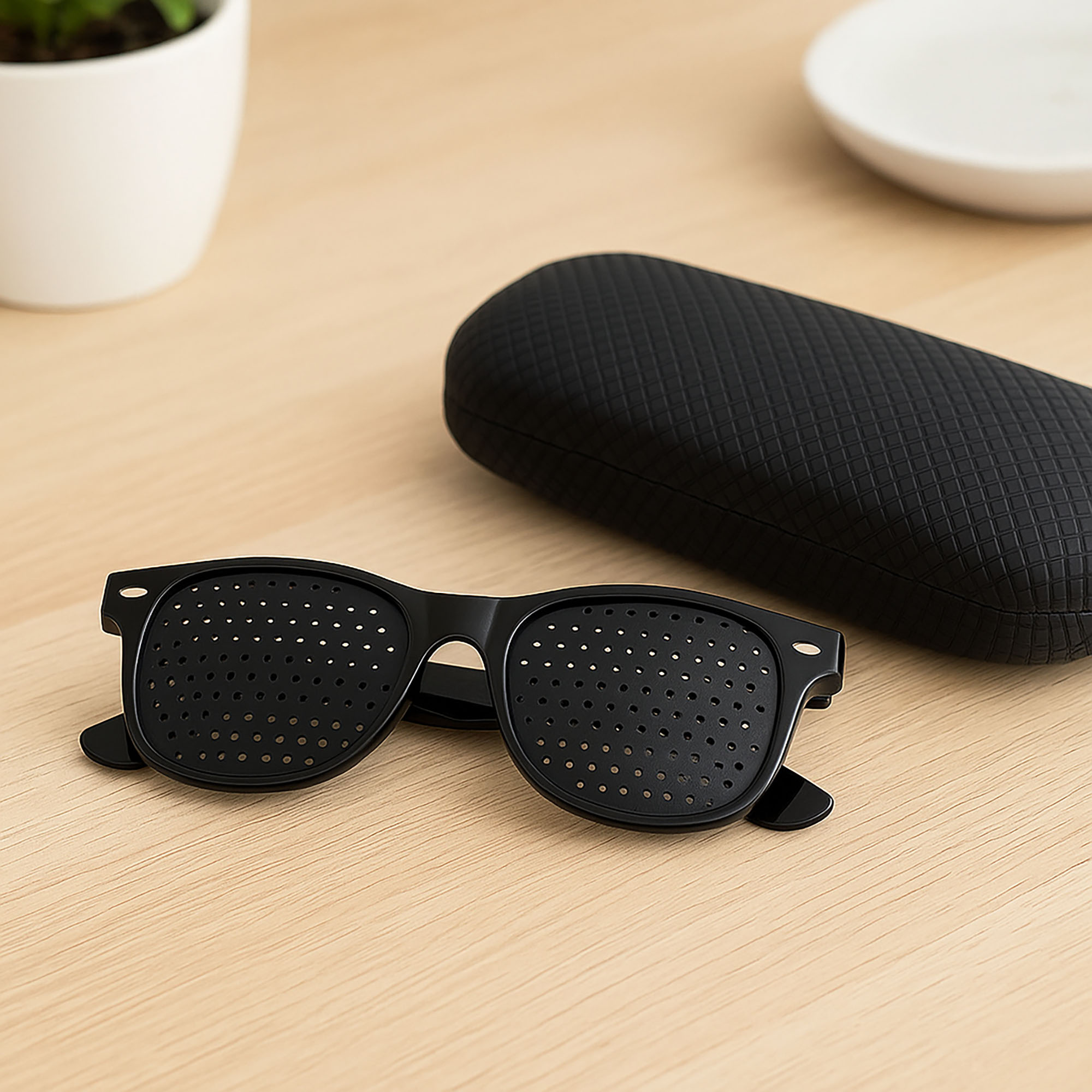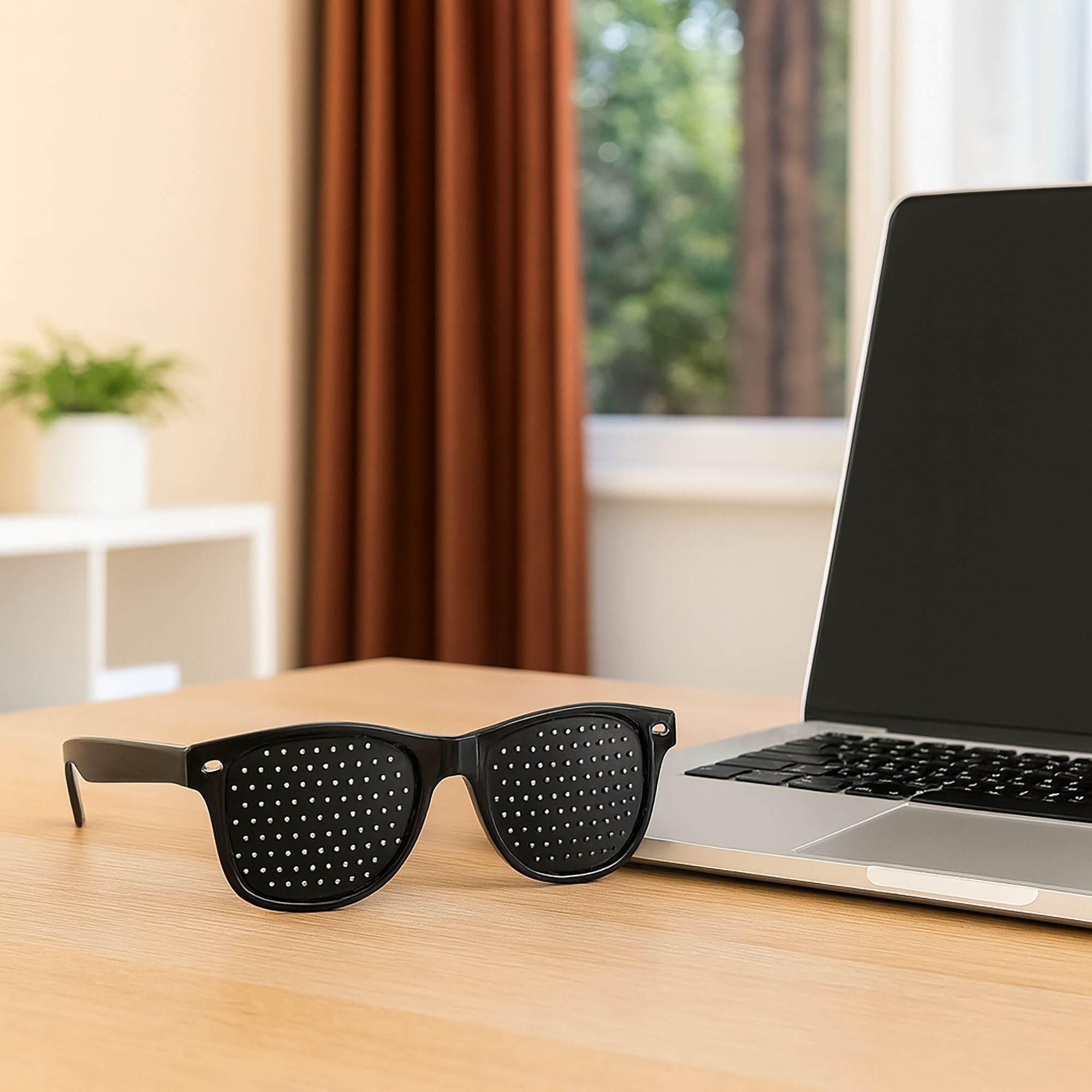 Działanie okularów Vitolog opiera się na prostym i naturalnym zjawisku fizycznym, znanym jako efekt pinhole. Zamiast tradycyjnych soczewek, okulary wyposażone są w specjalne przesłony z wieloma małymi otworami. Patrzenie przez te otwory sprawia, że do oka docierają jedynie promienie świetlne, które padają pod kątem prostym i nie ulegają rozproszeniu. Skupienie wzroku na tych małych punktach aktywuje mięśnie otaczające gałkę oczną, zmuszając je do ciągłego, naturalnego treningu. To mechaniczne ćwiczenie pomaga w relaksacji oczu po długim dniu pracy, redukując ich zmęczenie i wspierając zdolność do naturalnego ogniskowania obrazu.