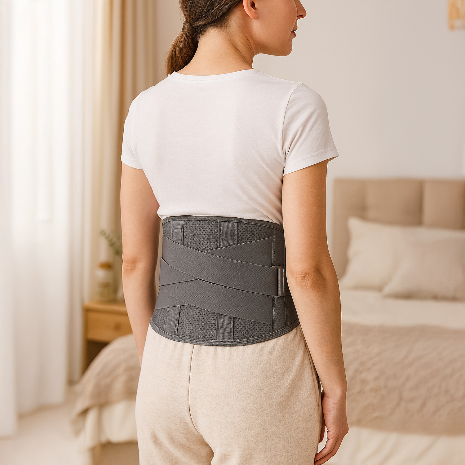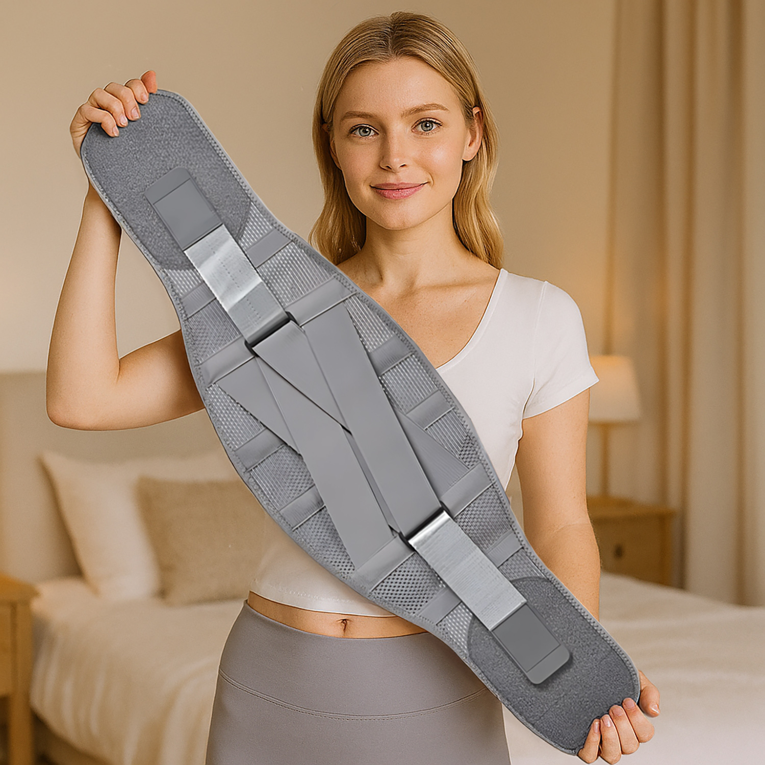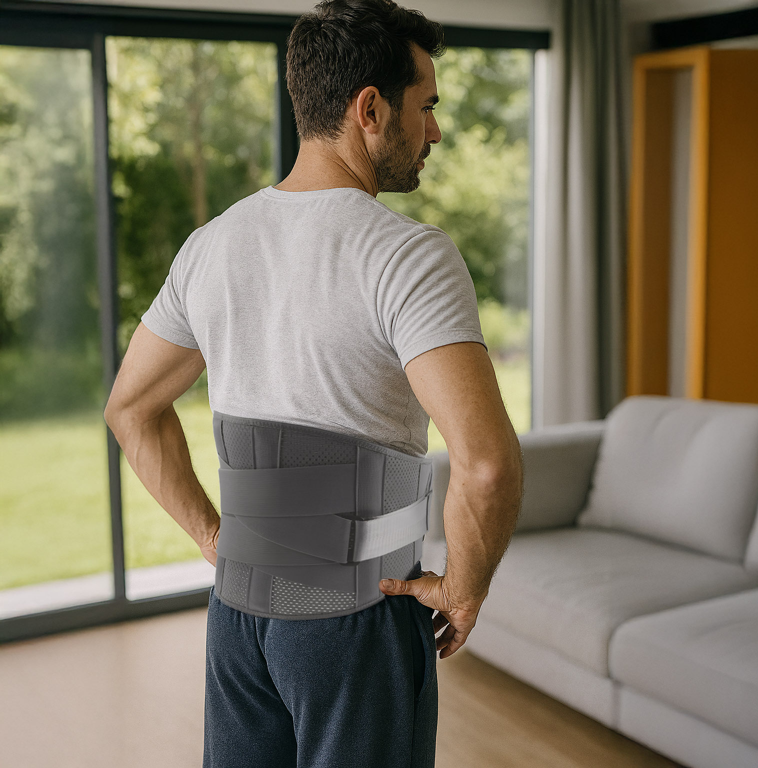 Potrójny System Wsparcia dla Stabilizacji: Cztery elastyczne, pionowe fiszbiny działają jak dodatkowe, solidne mięśnie, korygując postawę i odciążając kręgosłup lędźwiowy. To kluczowa korzyść dla osób z dyskopatią lub niestabilnością.