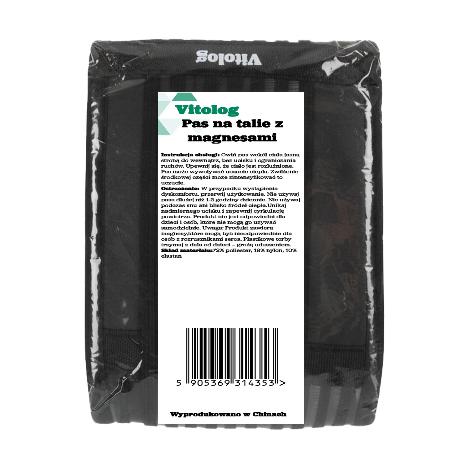 Sposób aplikacji: Pas należy zakładać jasną stroną (z widocznymi punktami magnetycznymi) bezpośrednio do ciała.