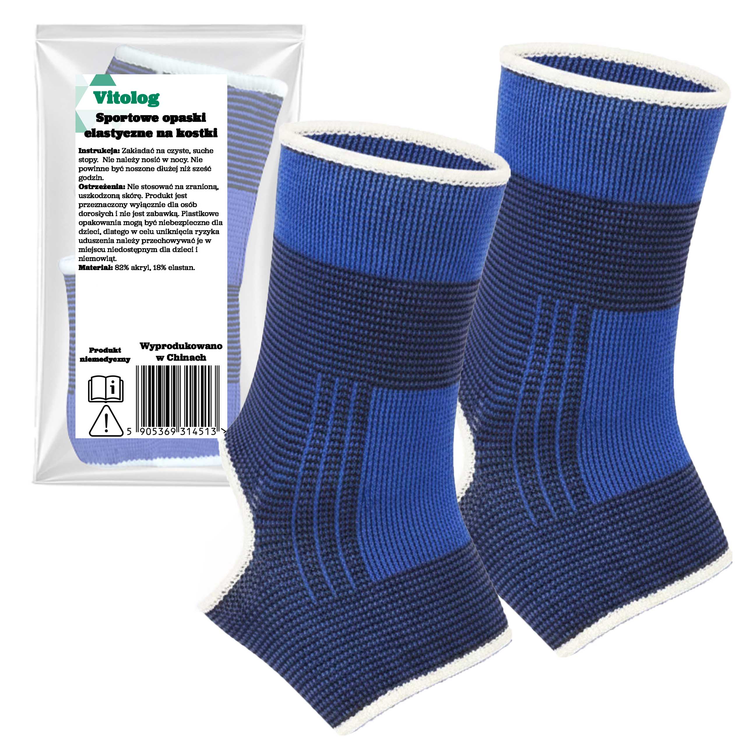 - Instrukcja użytkowania: Zakładać na czyste, suche stopy. Nie należy nosić opaski w nocy podczas snu.