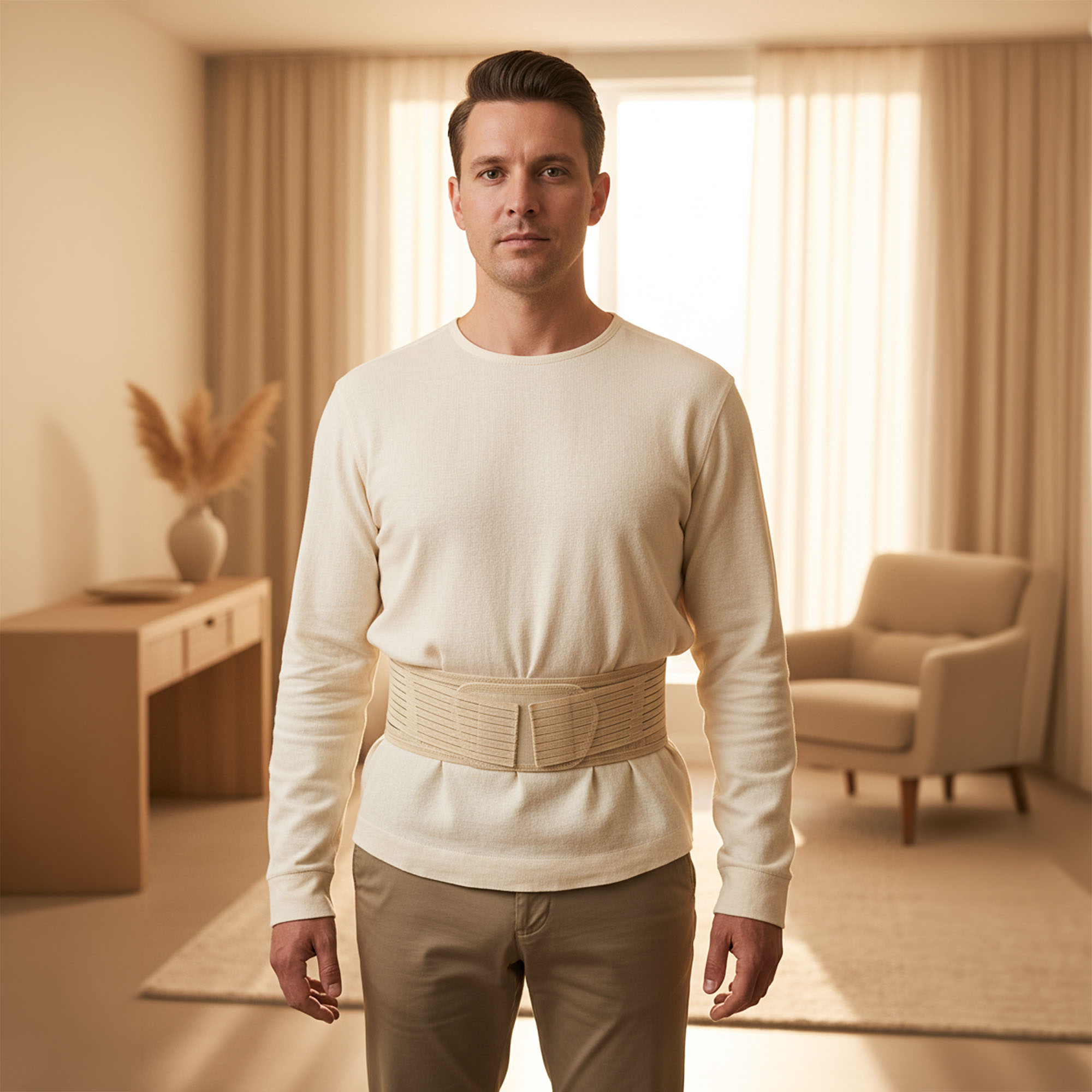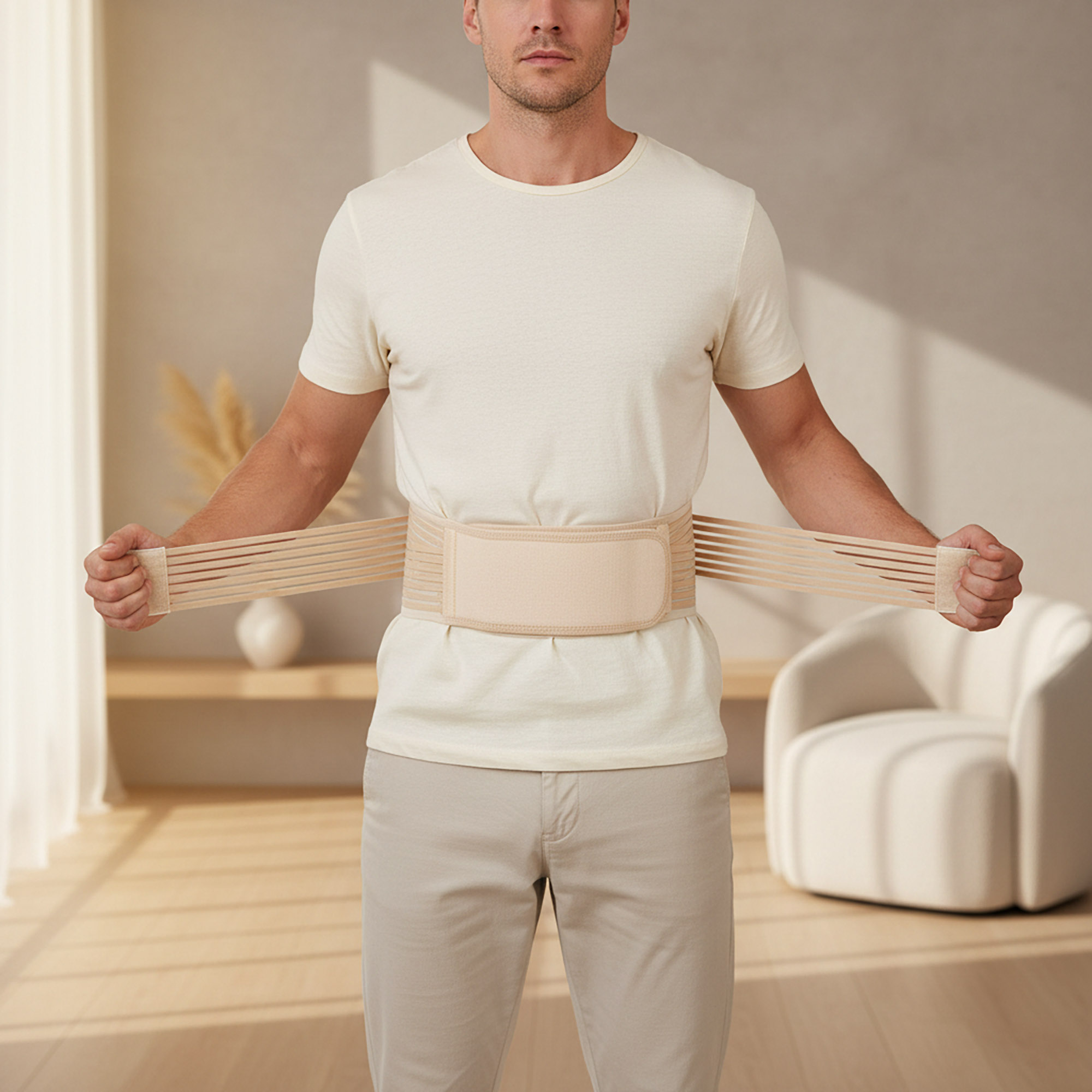 - Dyskrecja i Komfort: Beżowy kolor oraz niska waga (zaledwie 150 g) sprawiają, że stabilizator jest niemal niewidoczny pod ubraniem, pozwalając Ci na zachowanie pełnej pewności siebie w pracy czy na spotkaniu.