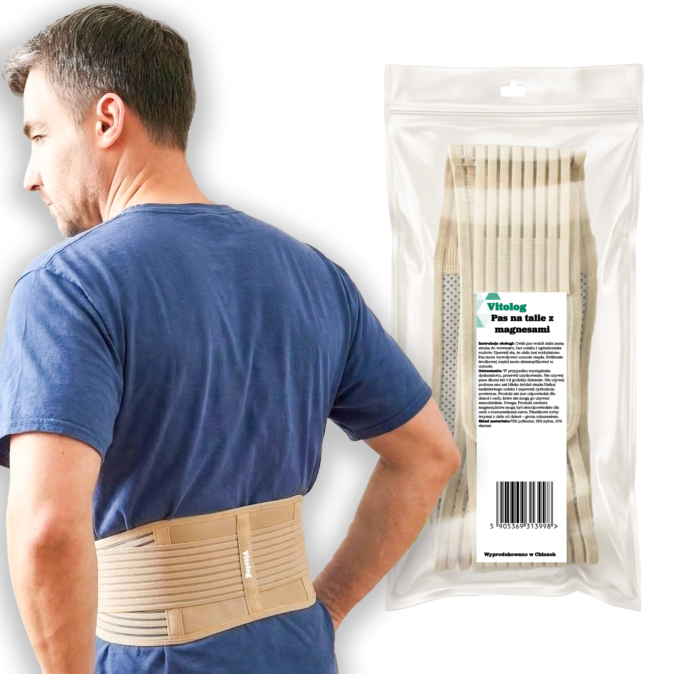 - Skuteczna Terapia Magnetyczna: Pas został wyposażony w 20 strategicznie rozmieszczonych magnesów, które generują pole magnetyczne wspomagające krążenie krwi i naturalne procesy regeneracyjne organizmu.