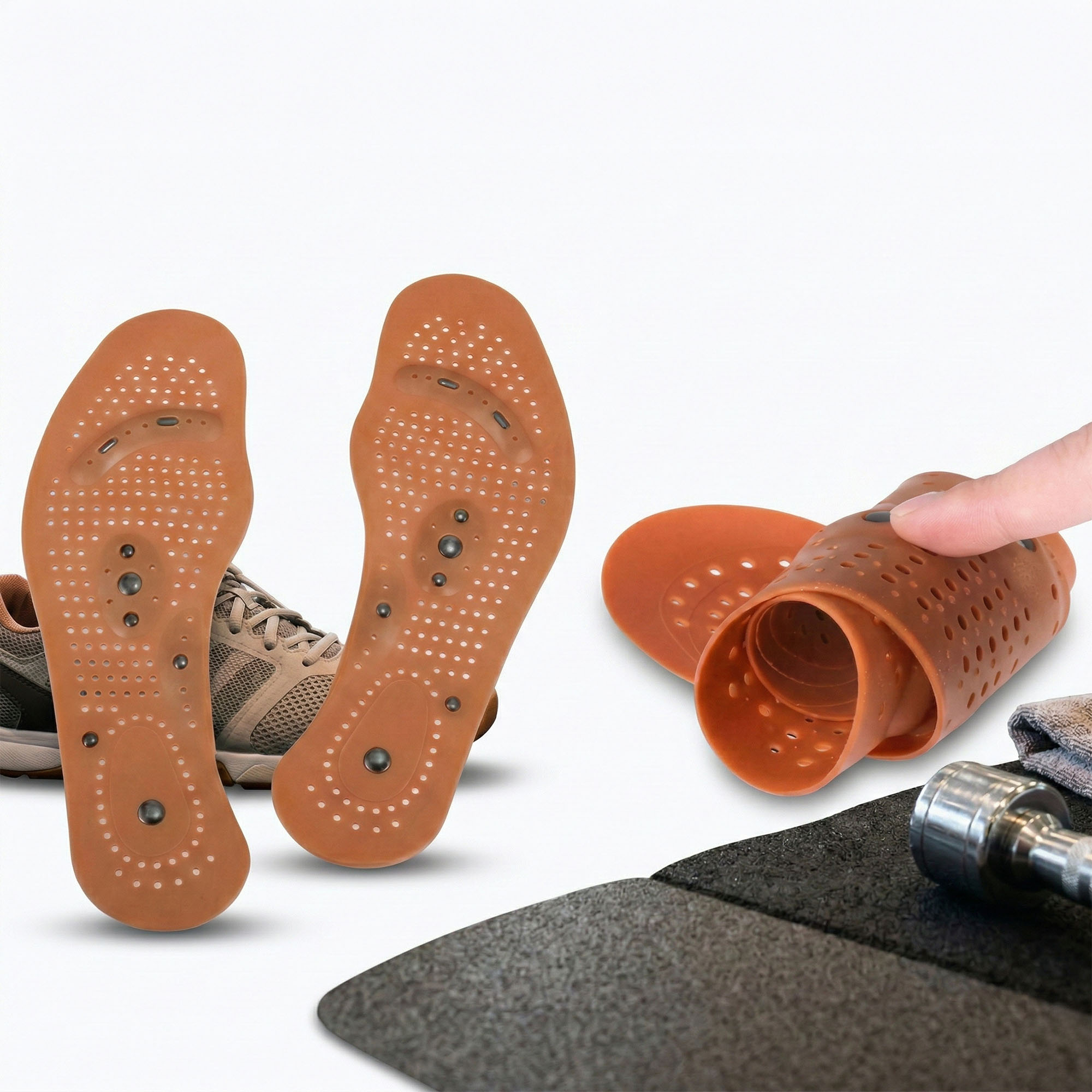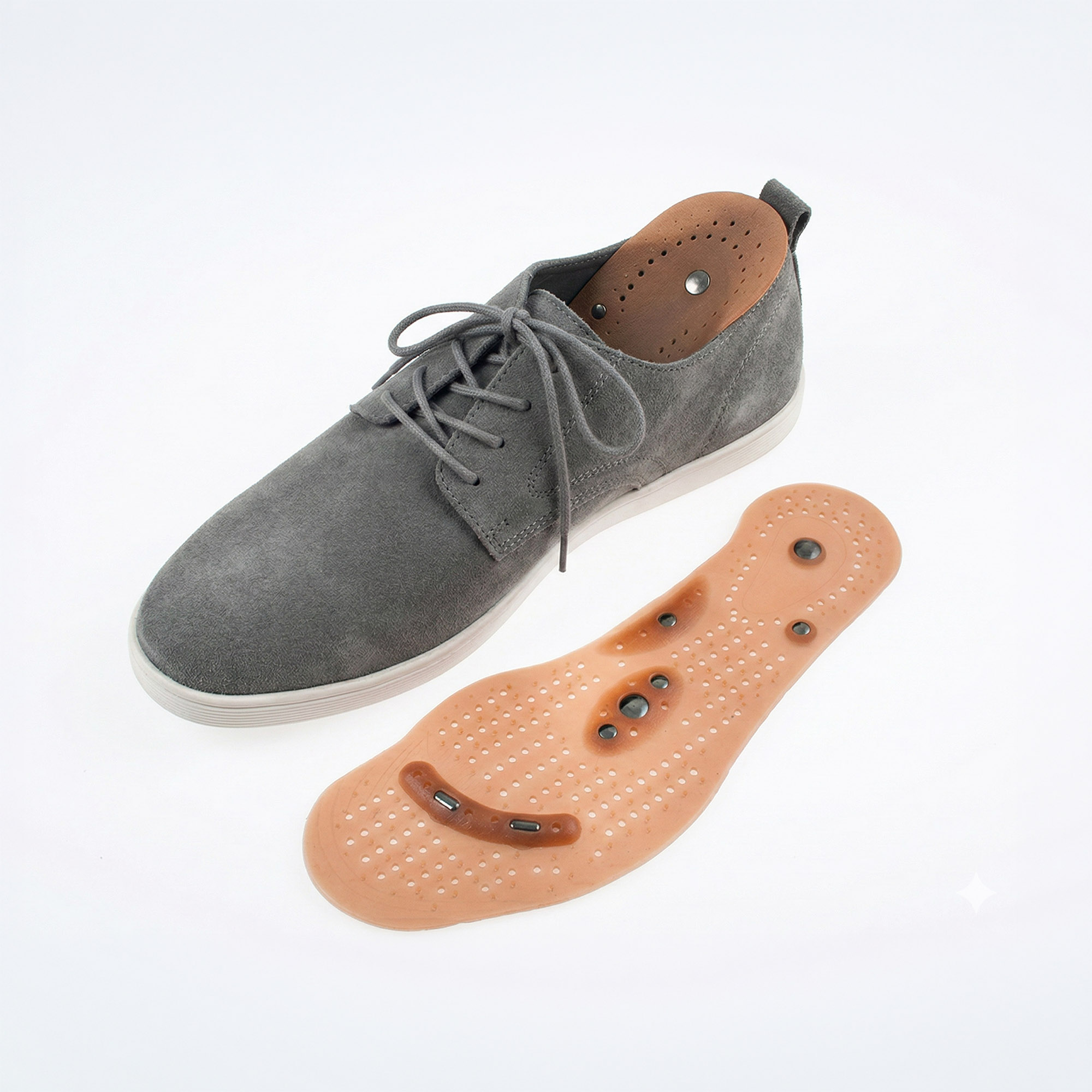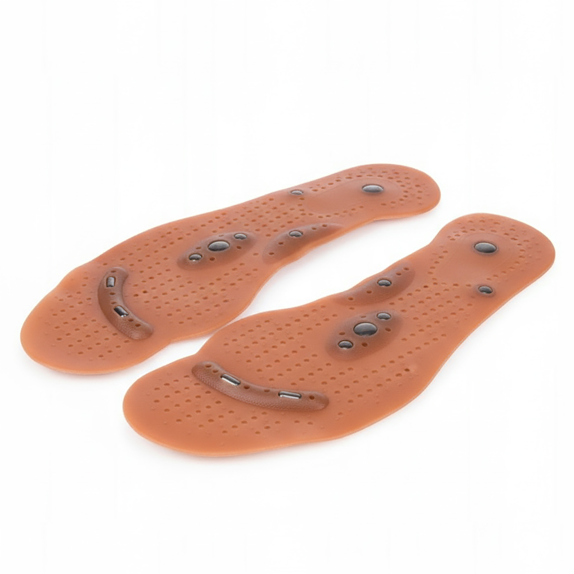 - Terapeutyczna Moc 8 Magnesów: Każda wkładka została wyposażona w 8 precyzyjnie rozmieszczonych magnesów o mocy 400 Gaussów. Działają one na receptory stóp, co może przyczyniać się do poprawy krążenia i naturalnej redukcji bólu.