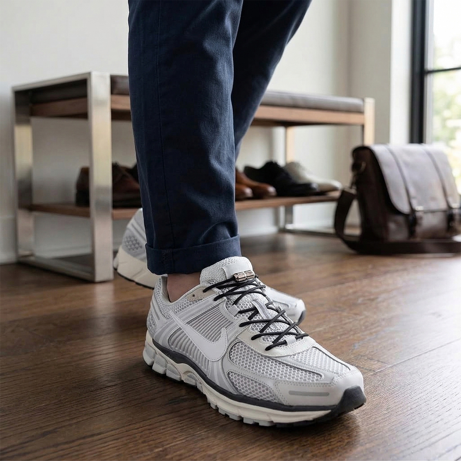 - Nigdy więcej wiązania: Dzięki zastosowaniu precyzyjnych, metalowych spinek w kształcie kapsułek, Twoje buty są zawsze gotowe do wyjścia. Zapominasz o plączących się sznurkach i ryzyku potknięcia.