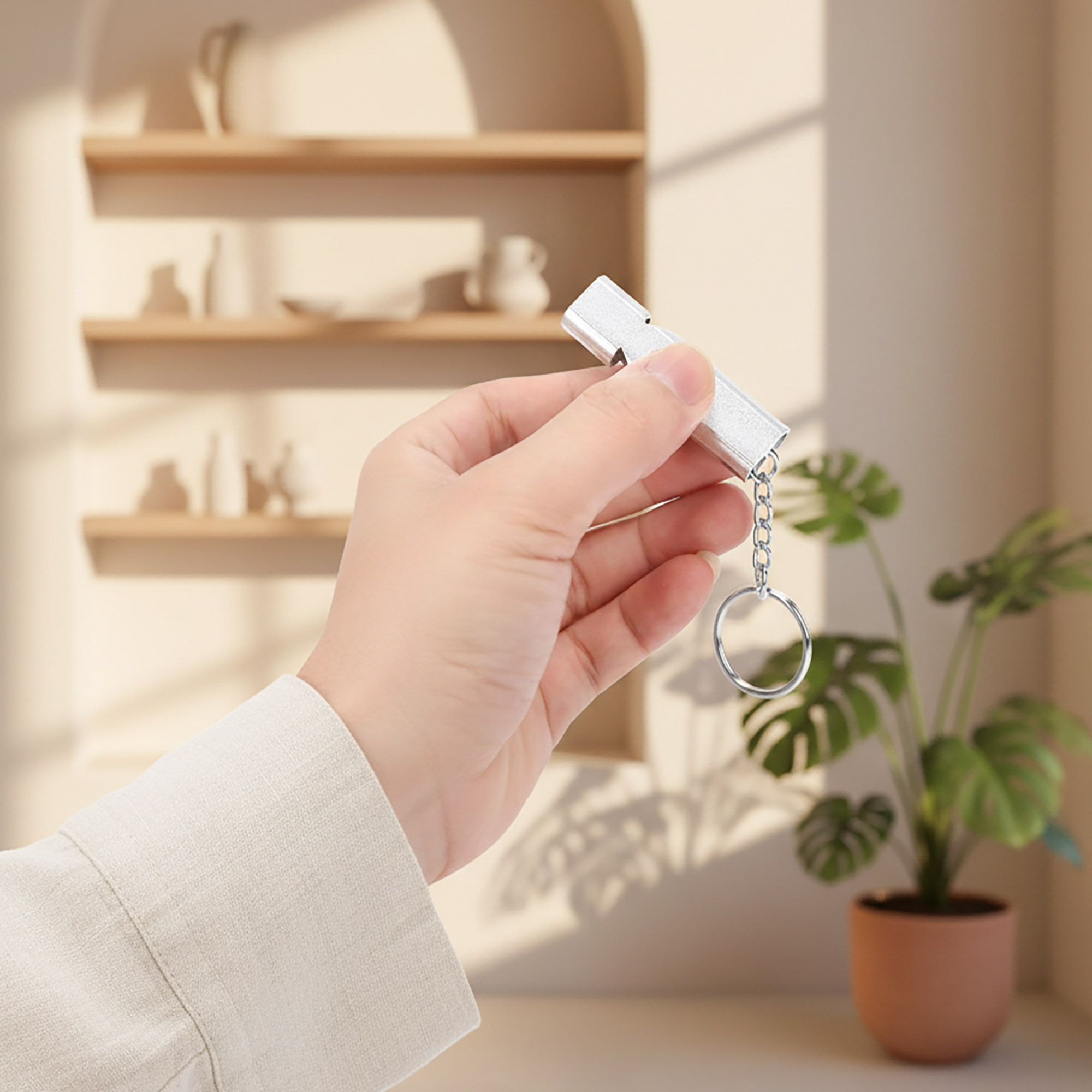 - Uniwersalna Estetyka: Srebrny, minimalistyczny design sprawia, że gwizdek prezentuje się profesjonalnie i nowocześnie, pasując zarówno do sportowego dresu, jak i taktycznego ekwipunku górskiego.