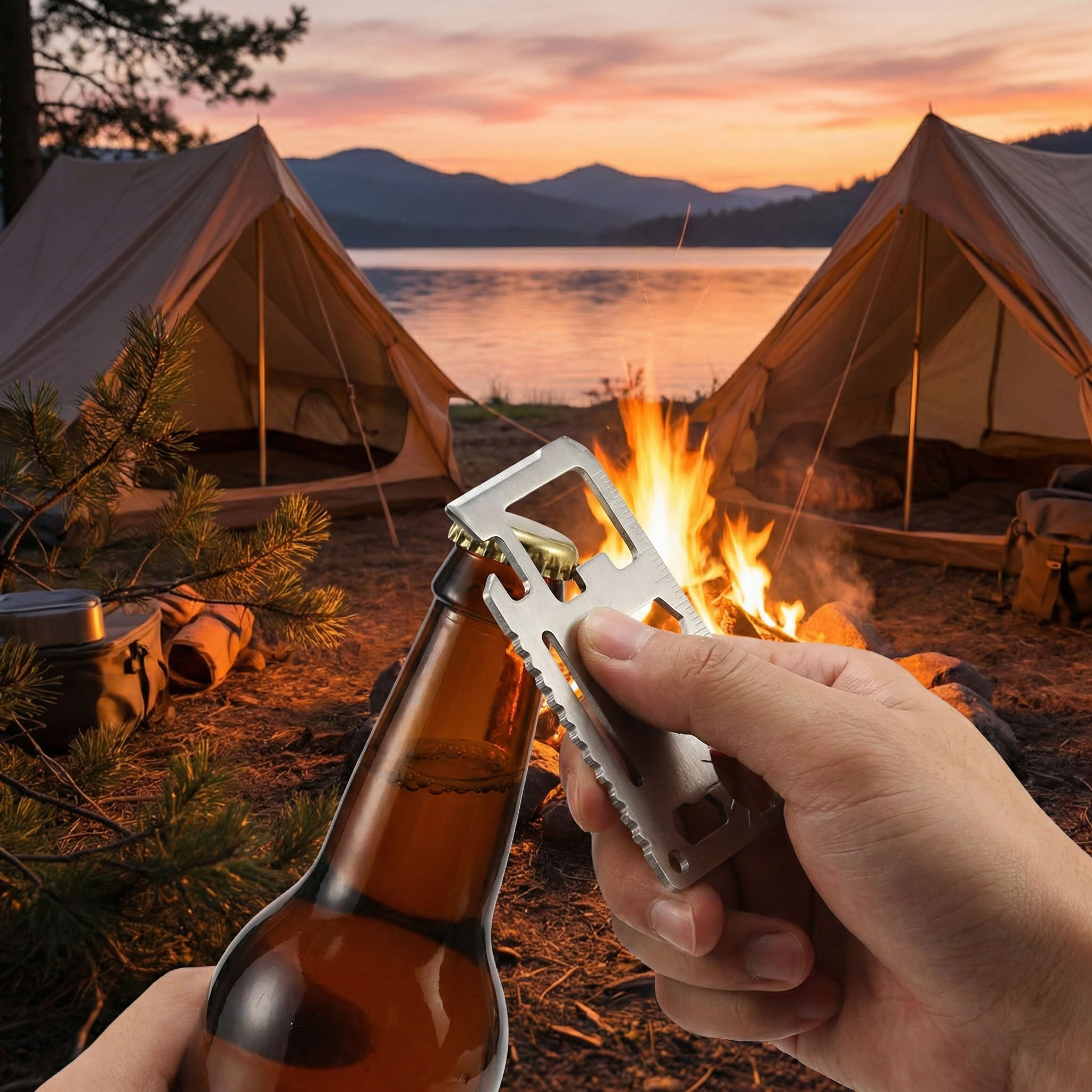 - Na kemping i biwak: Otwieracz do konserw i butelek to fundament każdego udanego wieczoru pod namiotem.