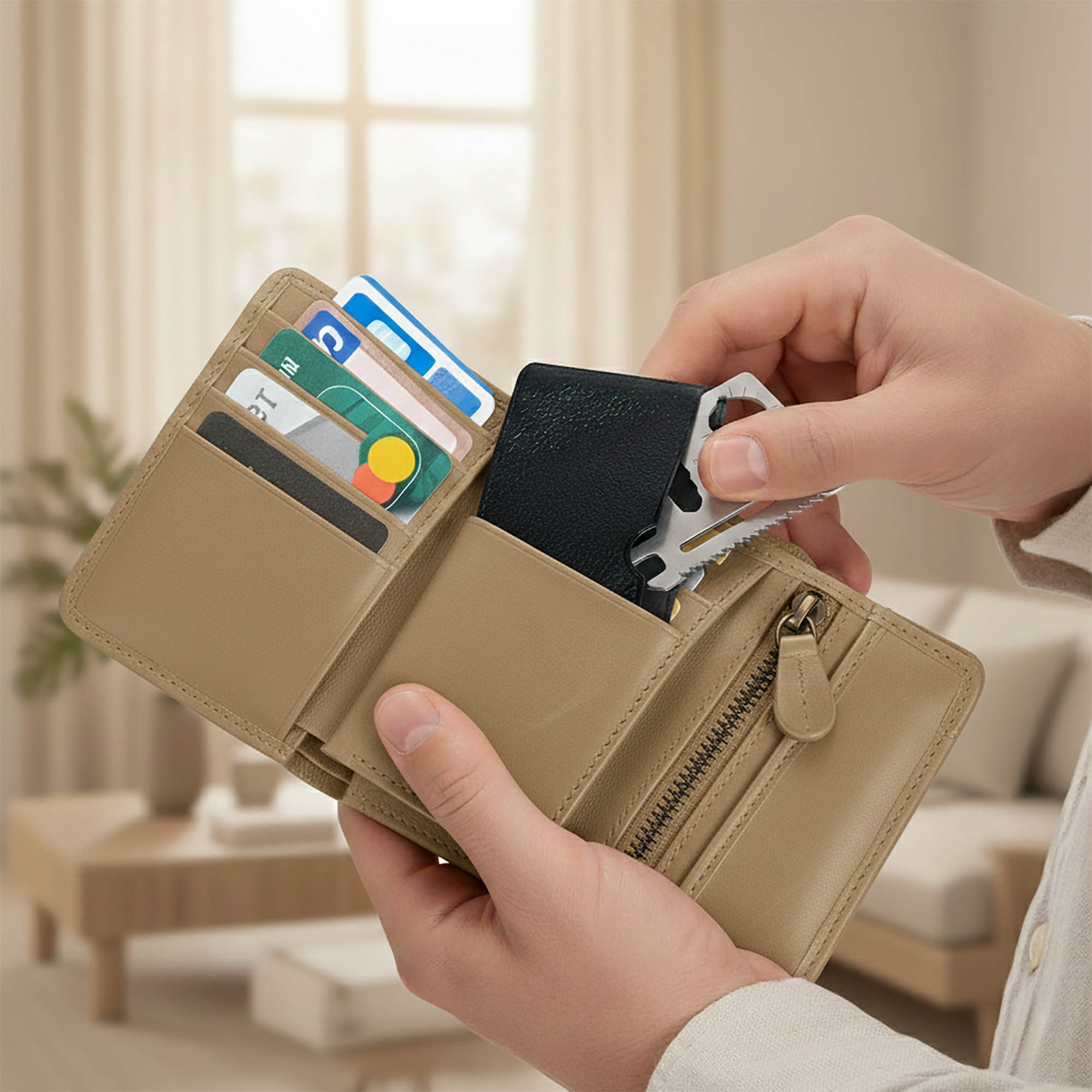 - Bezpieczeństwo przechowywania: Dołączony do zestawu pokrowiec chroni wnętrze Twojego portfela przed przypadkowym zarysowaniem przez krawędzie karty, jednocześnie ułatwiając jej szybkie wyjęcie.