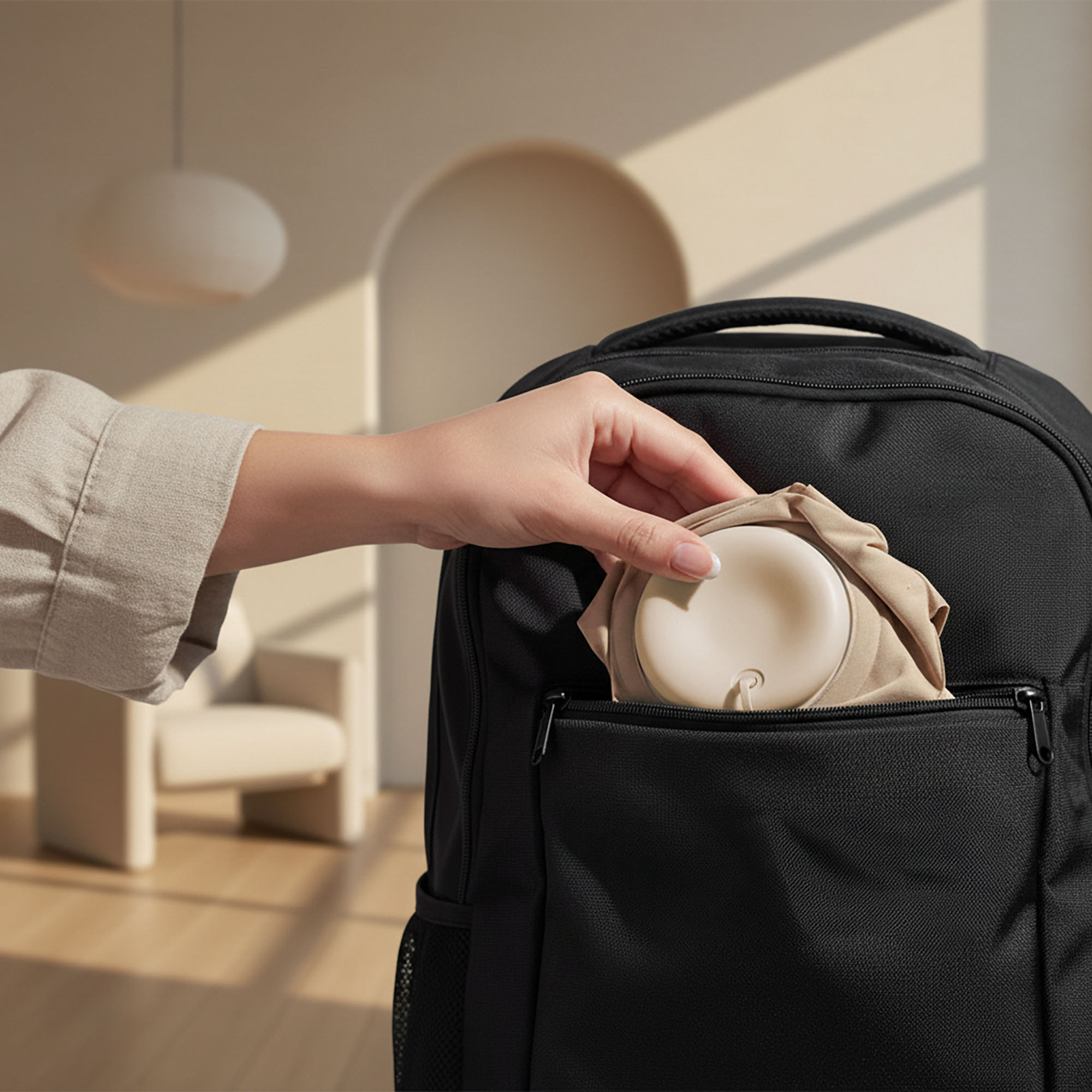 Maksymalna Oszczędność Miejsca: Poduszka po spuszczeniu powietrza zajmuje niewiele więcej miejsca niż smartfon. Możesz ją schować do kieszeni plecaka lub torebki, co jest kluczowe dla osób podróżujących tylko z bagażem podręcznym.