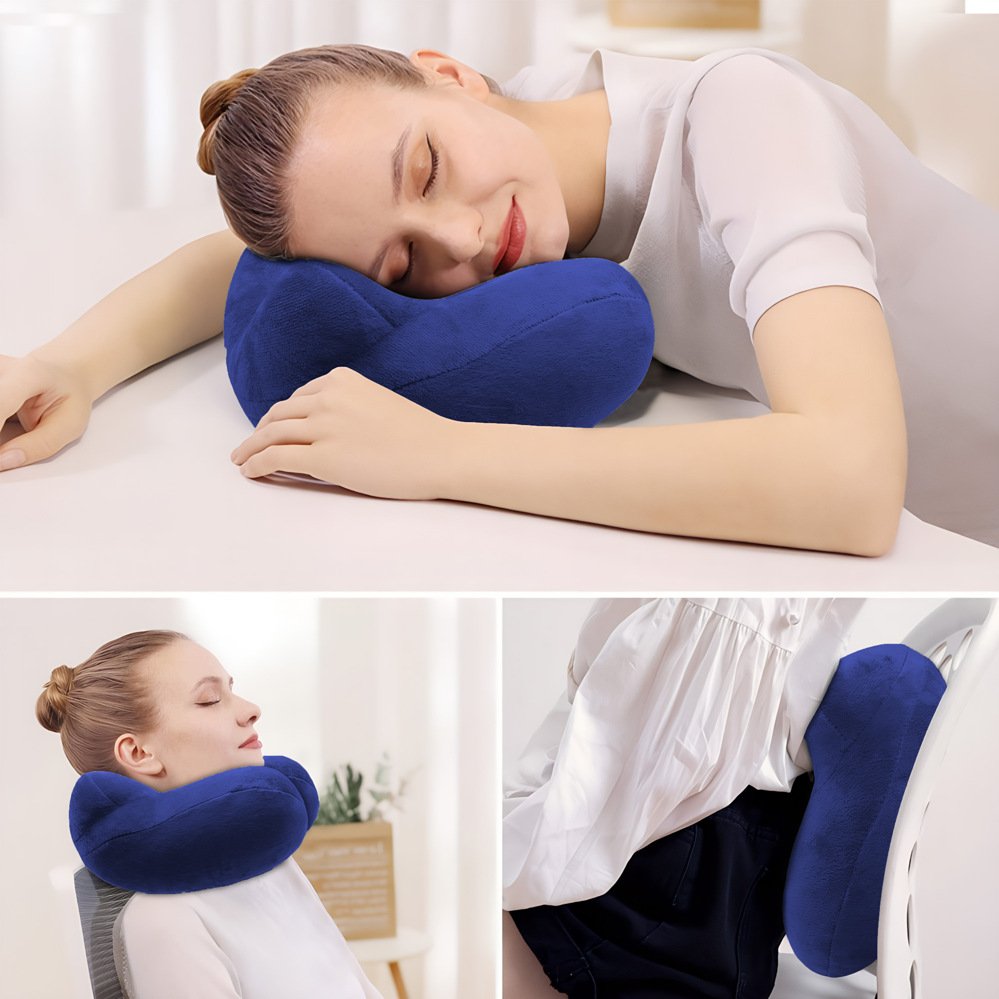 - Osoby Pracujące przy Biurku: Może służyć jako podparcie lędźwiowe lub karkowe podczas dłuższej pracy siedzącej, np. w biurze.