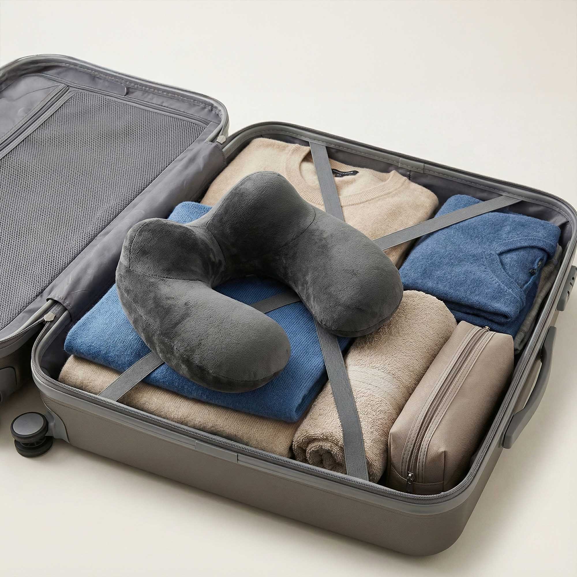 • Welurowy Komfort Dotyku: Zewnętrzny materiał pokrowca – miękki i przyjemny w dotyku welur – zapewnia luksusowe odczucie. Taka tekstura nie podrażnia skóry, co jest kluczowe podczas długotrwałego kontaktu, np. podczas snu w samolocie.
