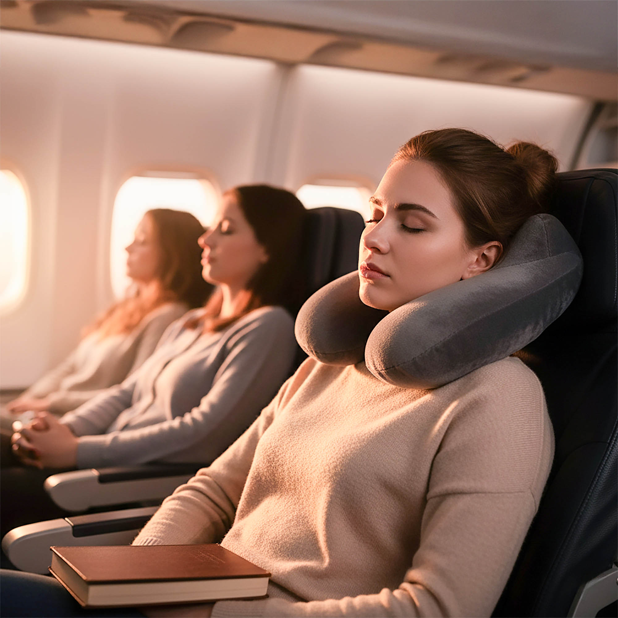 • Pasażerowie Linii Lotniczych i Kolei: Idealny do długich podróży samolotem lub pociągiem, gdzie stabilne podparcie jest niezbędne do zdrowego snu.