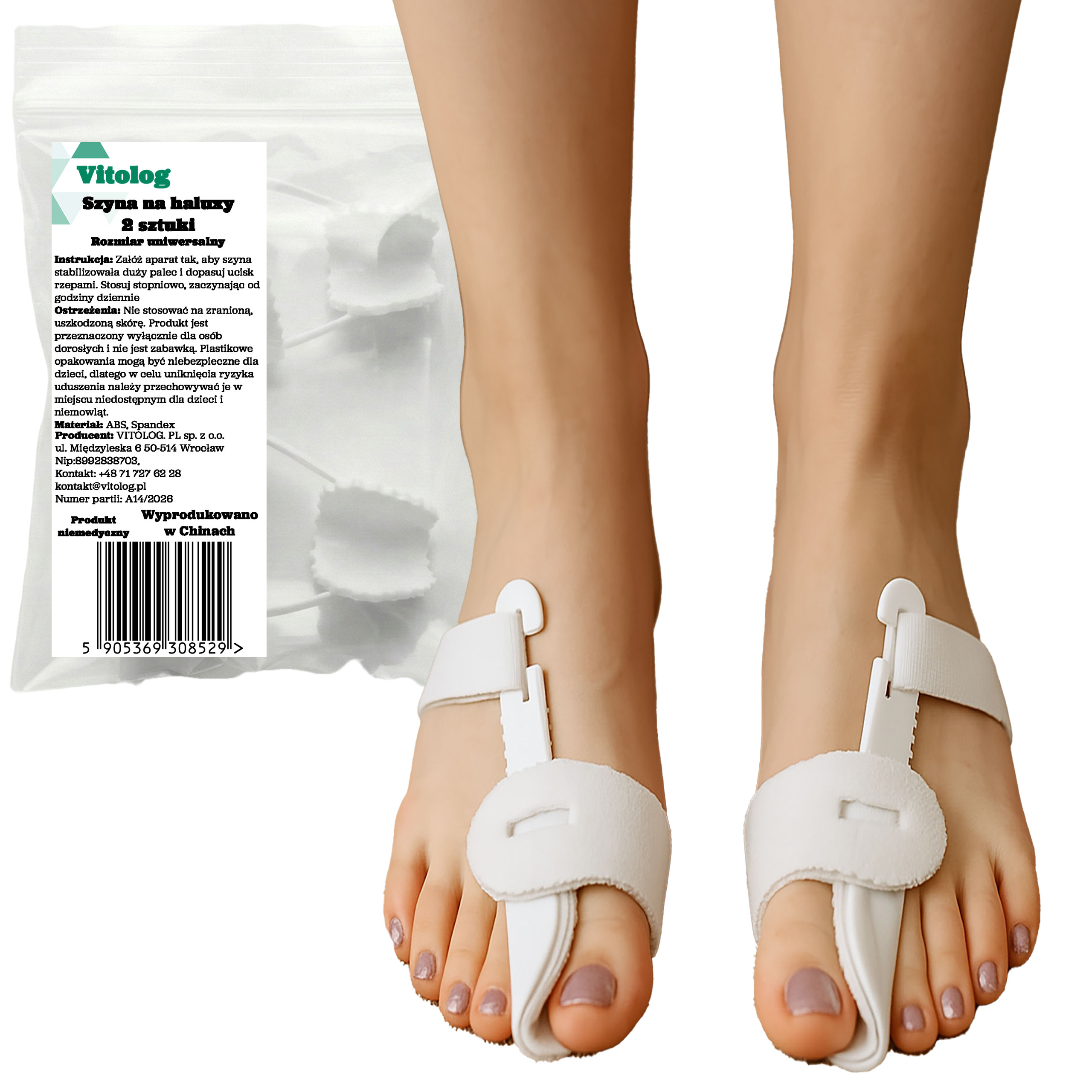 2x Aparat na Haluksy Separator Opaska Korektor Haluksa Haluksów Szyna na Noc Korygujący na Duży Paluch