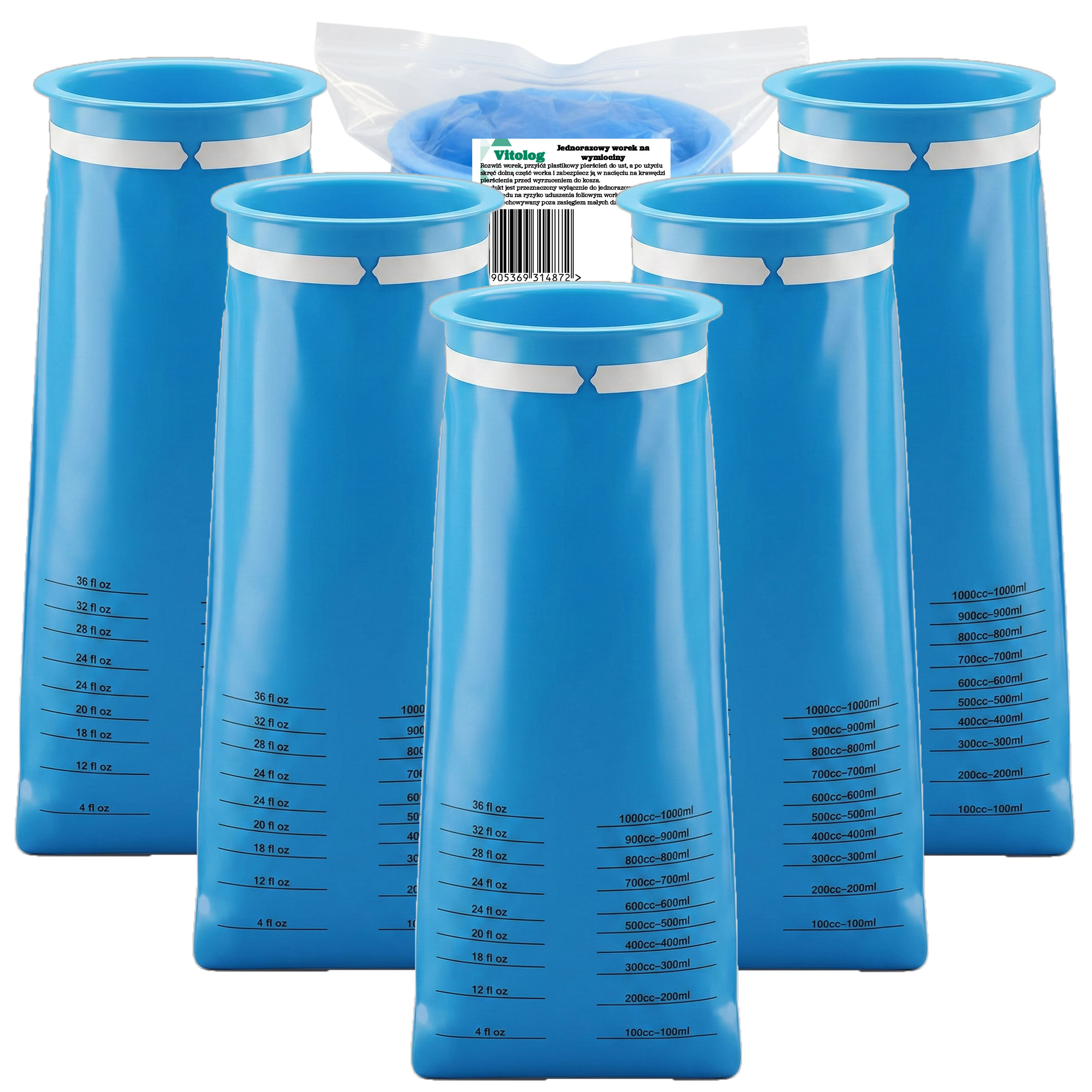 Worek na Wymioty Vitolog z Miarką i Usztywnianym Kołnierzem 5 szt.